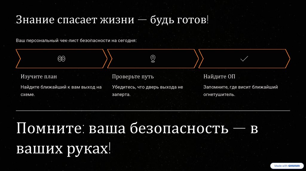 Знание спасает жизни — будь готов!Ваш персональный чек-лист безопасности на сегодня:
