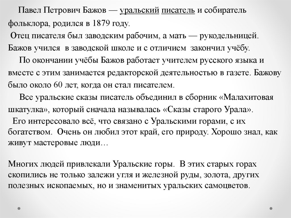 Все уральские сказы писатель объединил в сборник «Малахитовая