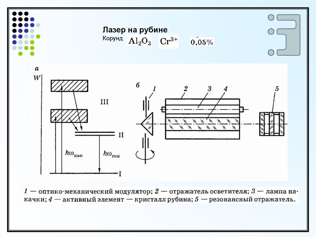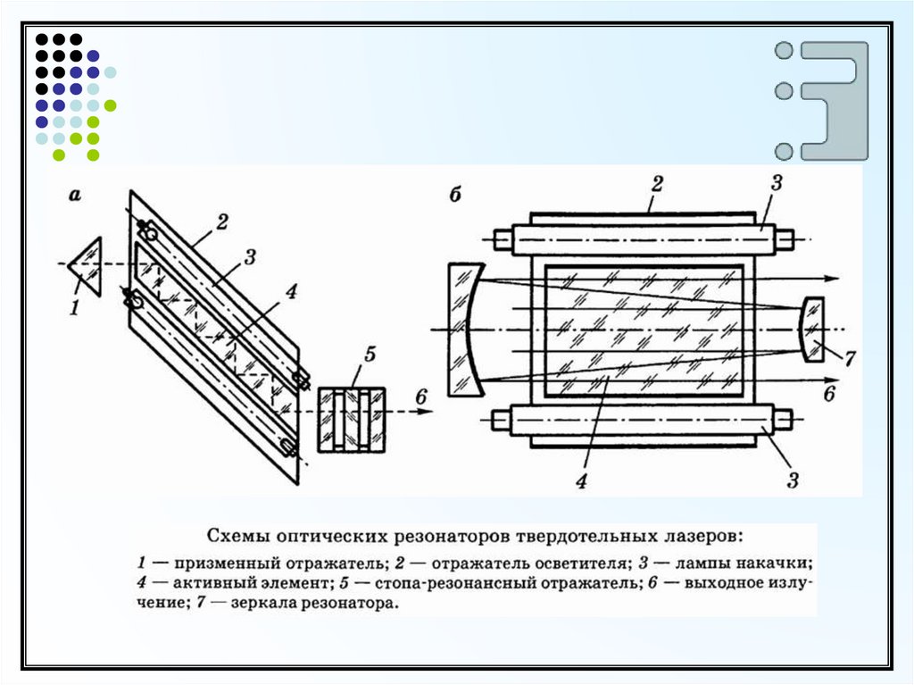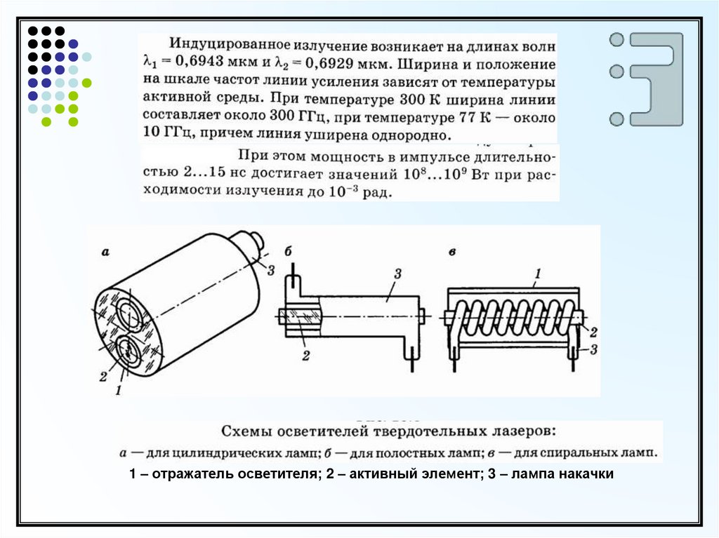 1 – отражатель осветителя; 2 – активный элемент; 3 – лампа накачки6.