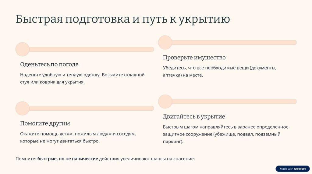Быстрая подготовка и путь к укрытиюПроверьте имущество