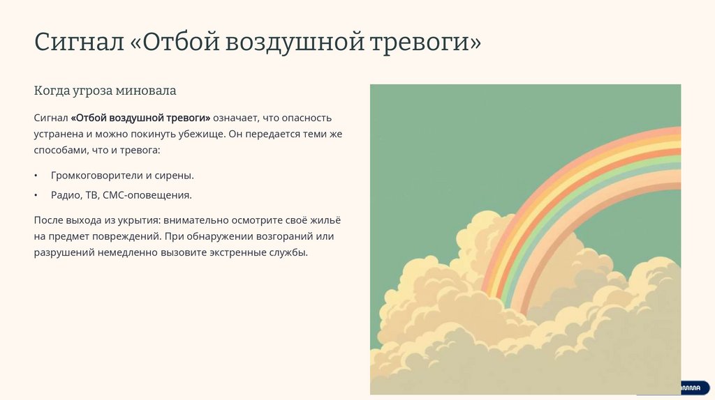 Сигнал «Отбой воздушной тревоги»Когда угроза миновала