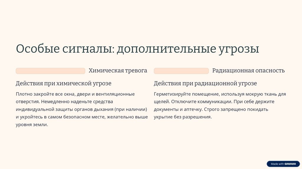 Особые сигналы: дополнительные угрозыХимическая тревога