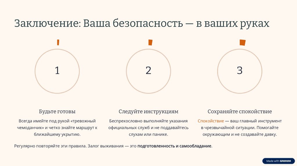 Регулярно повторяйте эти правила. Залог выживания — это подготовленность и самообладание.