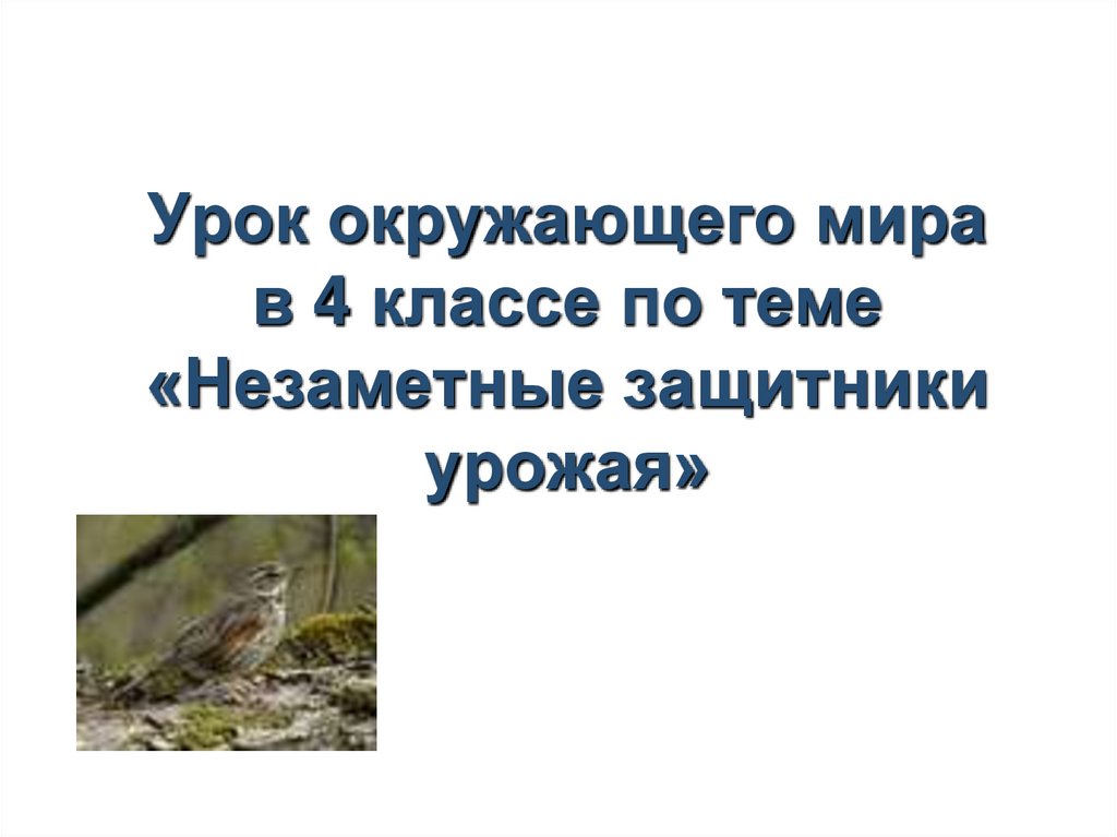 1. Урок окружающего мира в 4 классе по теме «Незаметные защитники урожая»