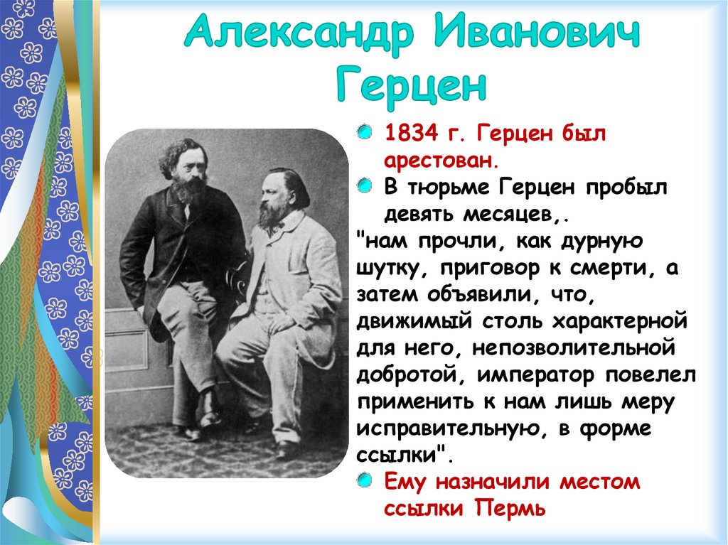 Вскоре Герцен был переведён в Вятку.«Вы ...не знаете России, живши в её центре;