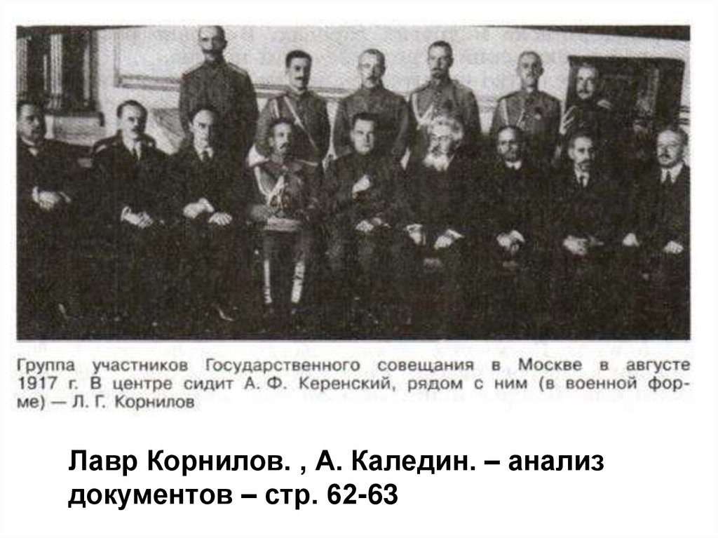 Лавр Корнилов. , А. Каледин. – анализдокументов – стр. 62-63