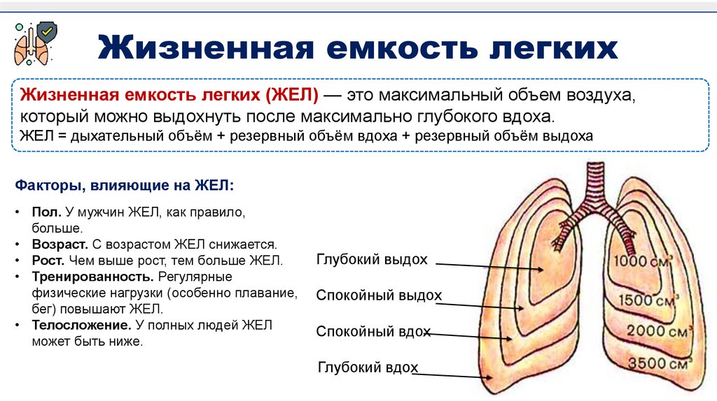 Жизненная емкость легкихЖизненная емкость легких (ЖЕЛ) — это максимальный объем воздуха,