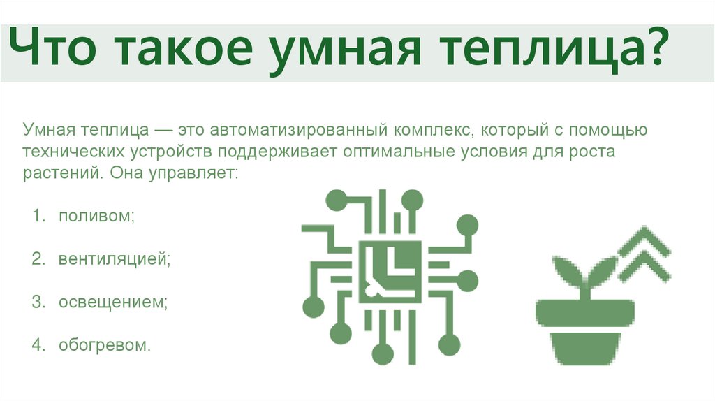 Что такое умная теплица?Умная теплица — это автоматизированный комплекс, который с помощью