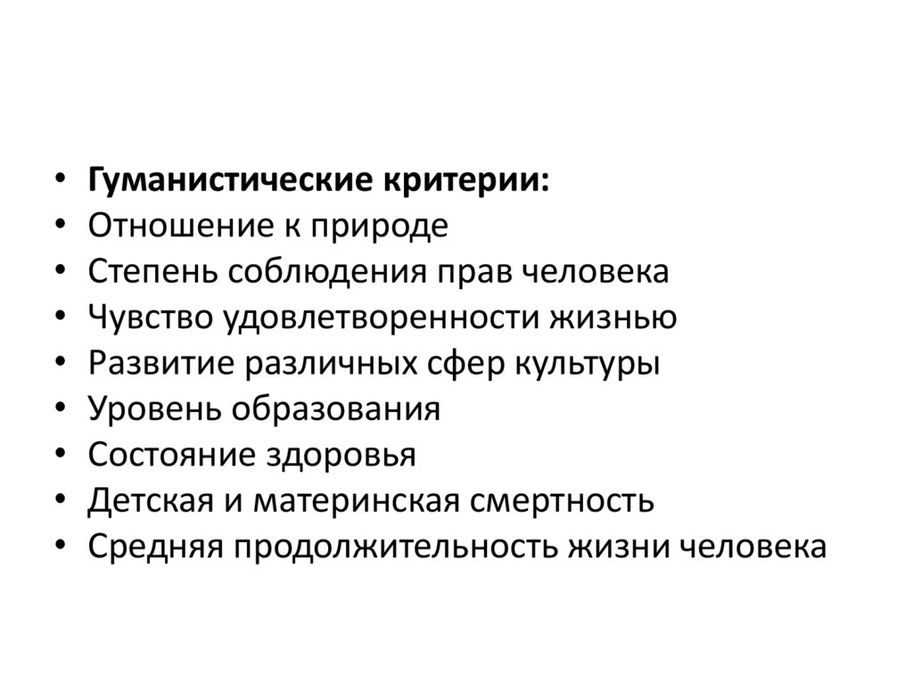 • Общие критерии общественного прогресса:• Развитие производительных сил, включая