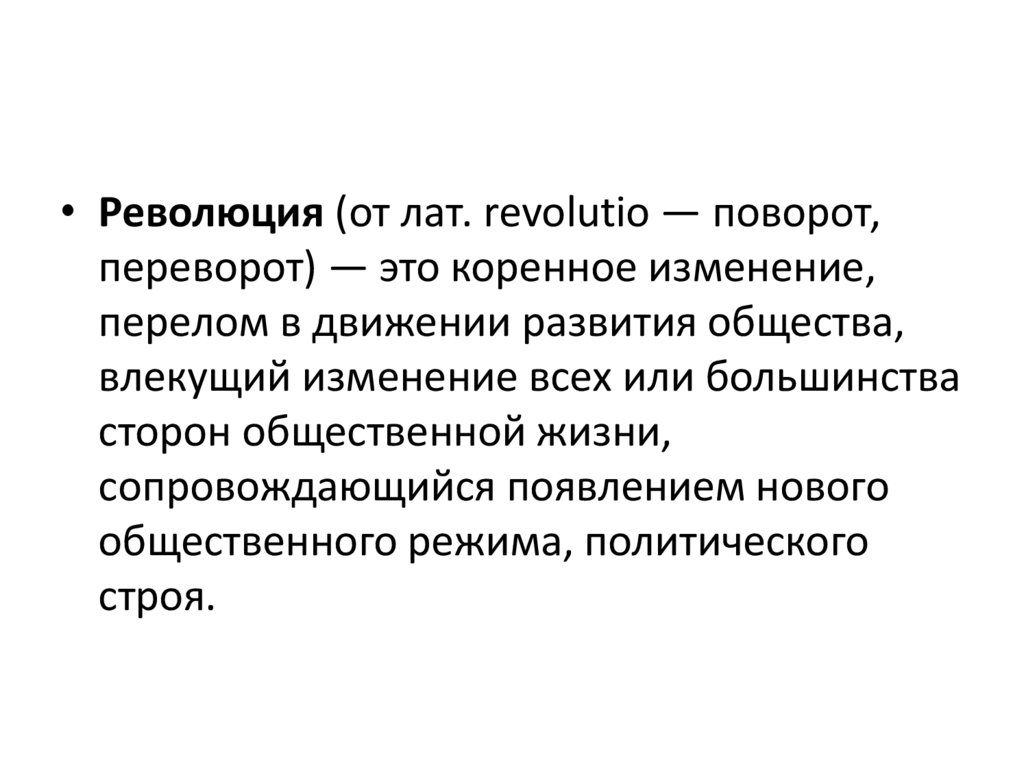• Революция (от лат. revolutio — поворот,переворот) ― это коренное изменение,