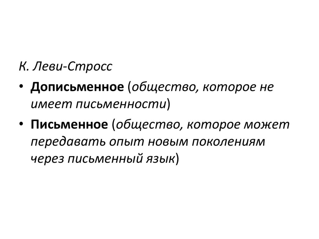 К. Леви-Стросс• Дописьменное (общество, которое не