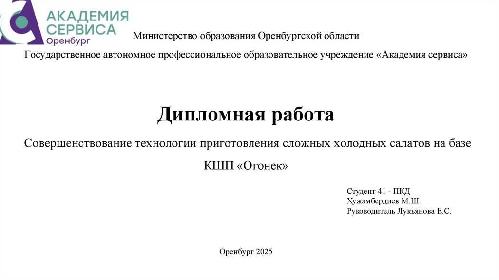 Министерство образования Оренбургской областиГосударственное автономное профессиональное образовательное учреждение «Академия сервиса»