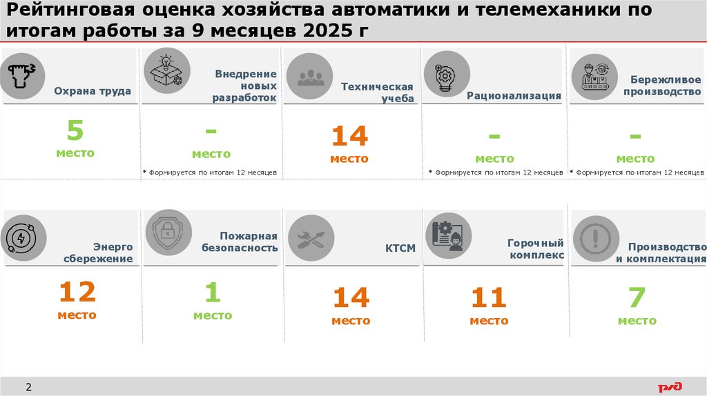 Рейтинговая оценка хозяйства автоматики и телемеханики поитогам работы за 9 месяцев 2025 г