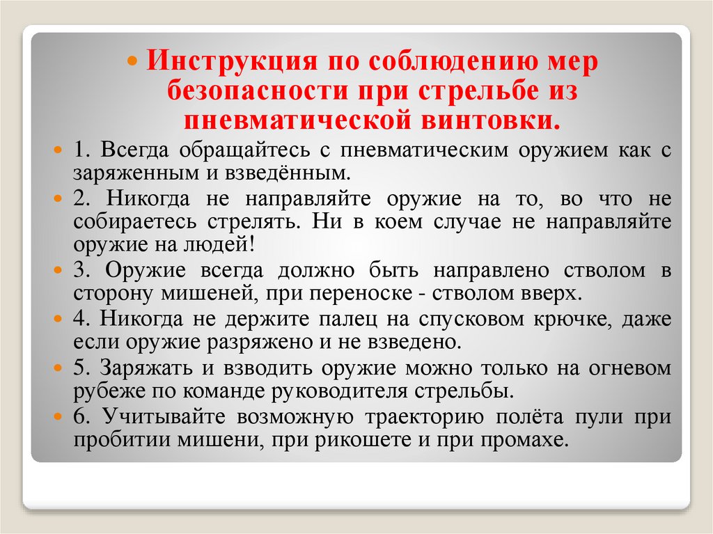 Инструкция по соблюдению мербезопасности при стрельбе из