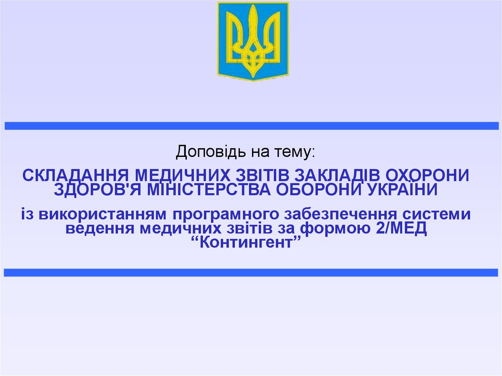 Доповідь на тему:СКЛАДАННЯ МЕДИЧНИХ ЗВІТІВ ЗАКЛАДІВ ОХОРОНИ