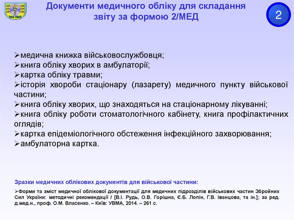 Документи медичного обліку для складаннязвіту за формою 2/МЕД