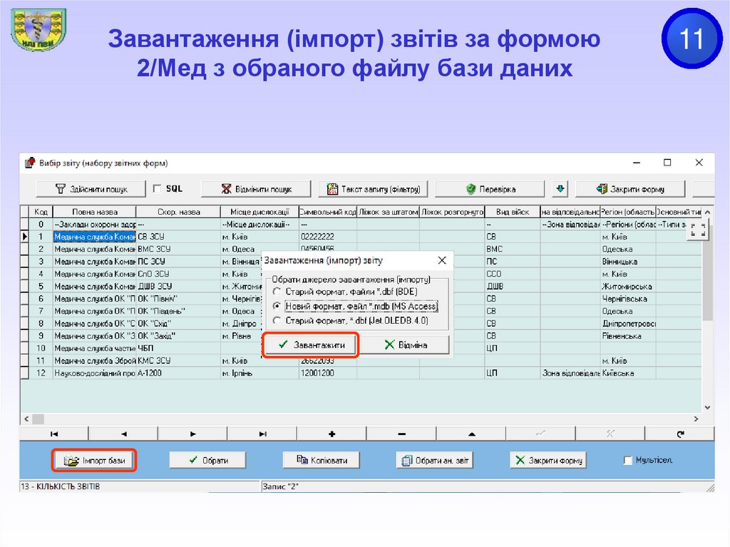 Завантаження (імпорт) звітів за формою2/Мед з обраного файлу бази даних