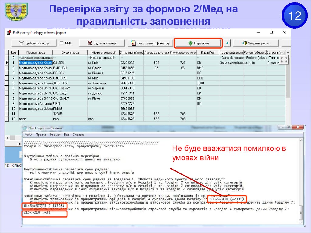Перевірка звіту за формою 2/Мед направильність заповнення
