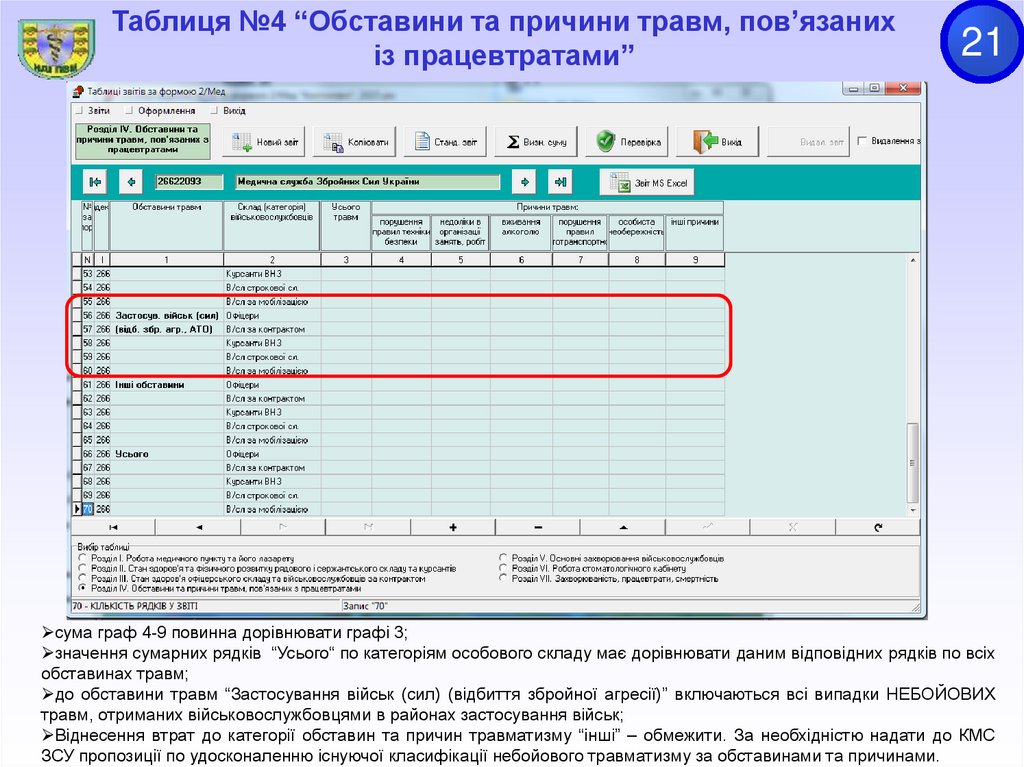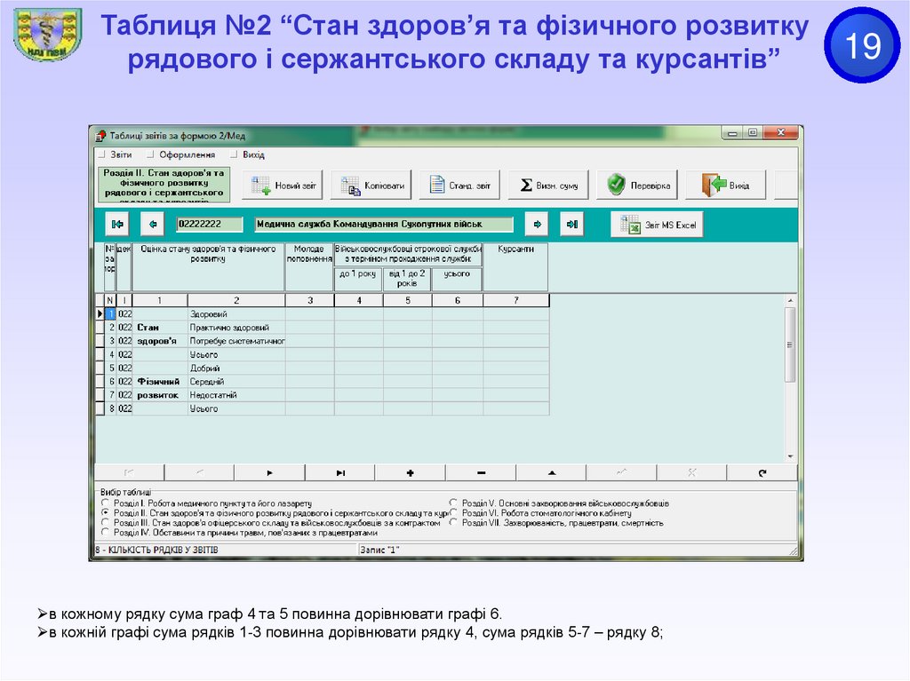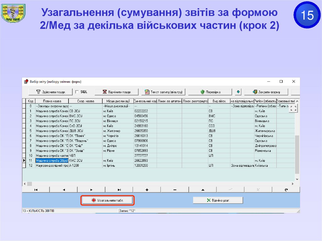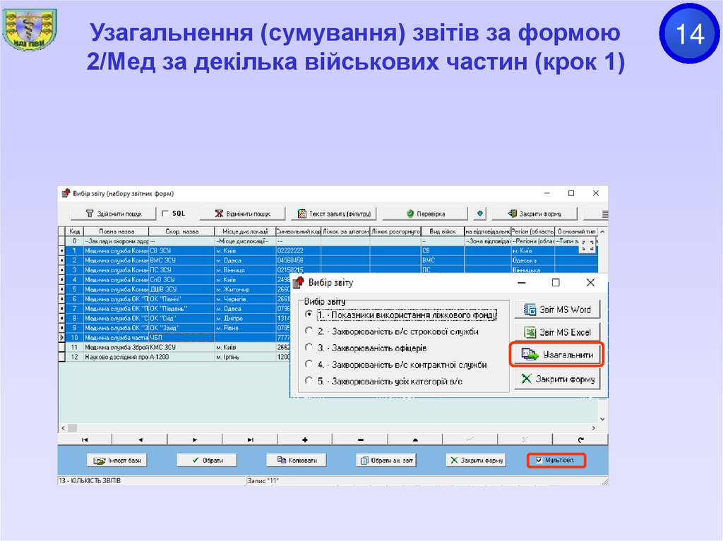 Узагальнення (сумування) звітів за формою2/Мед за декілька військових частин (крок 2)