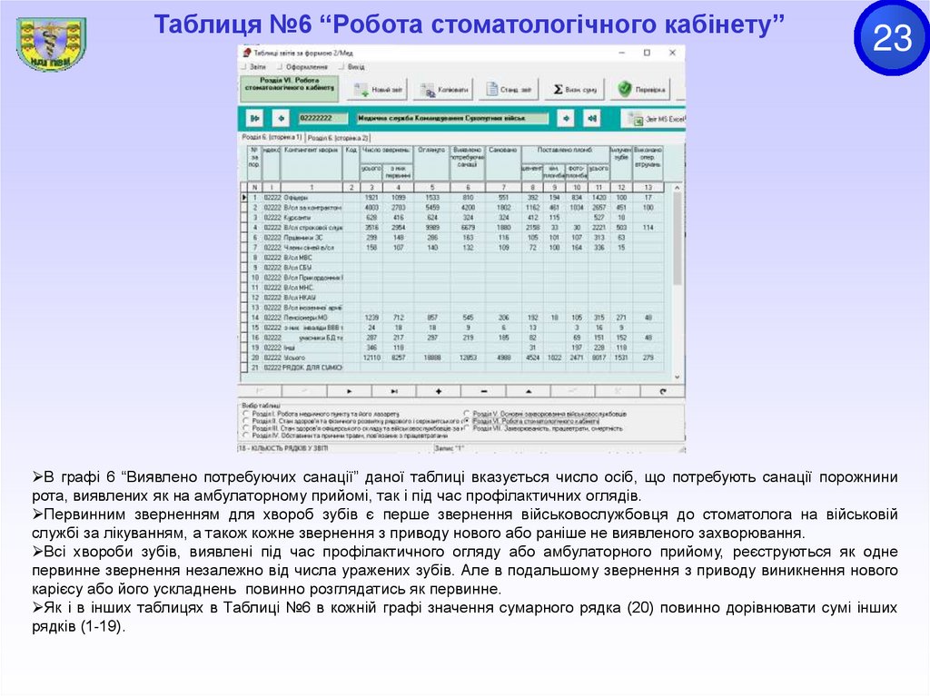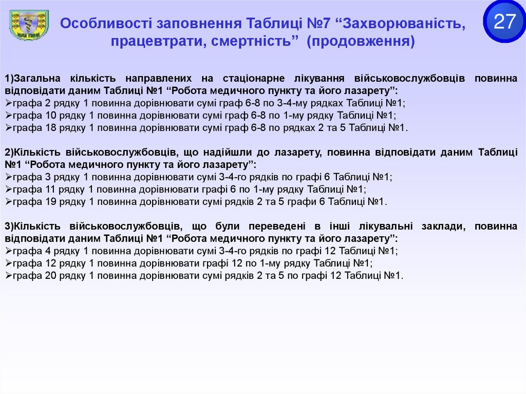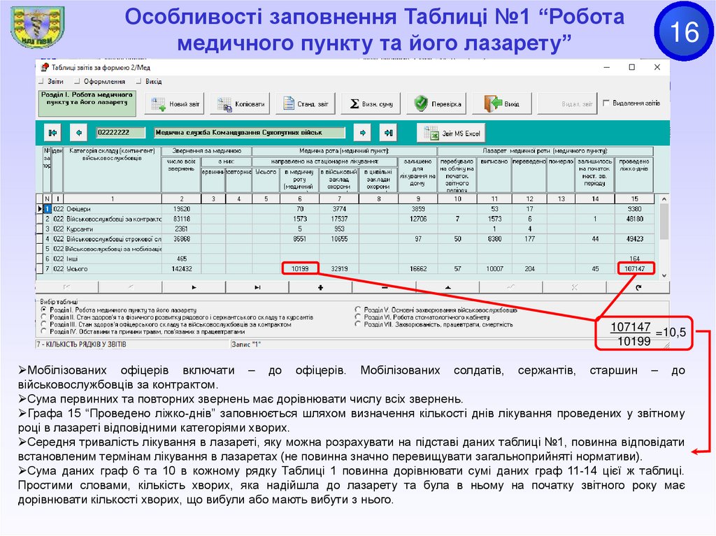 Особливості заповнення Таблиці №1 “Роботамедичного пункту та його лазарету”