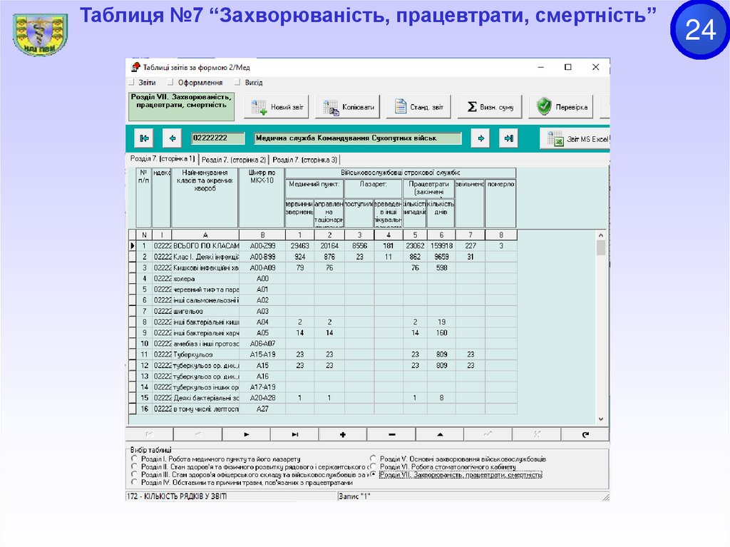 Таблиця №7 “Захворюваність, працевтрати, смертність”24