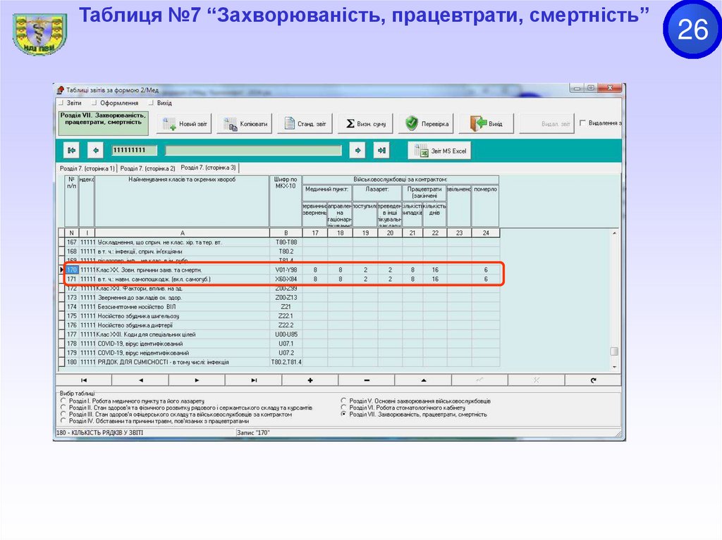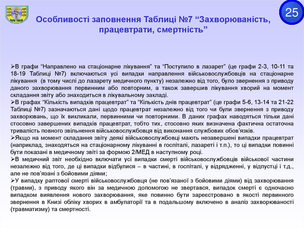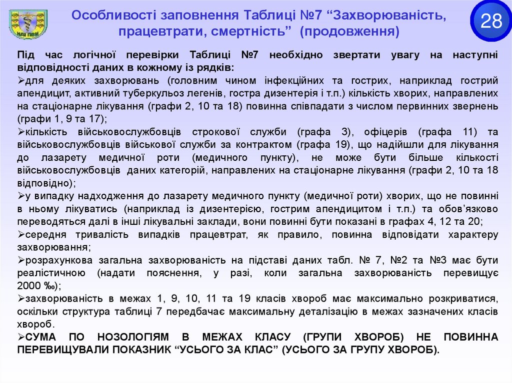 Особливості заповнення Таблиці №7 “Захворюваність,працевтрати, смертність”