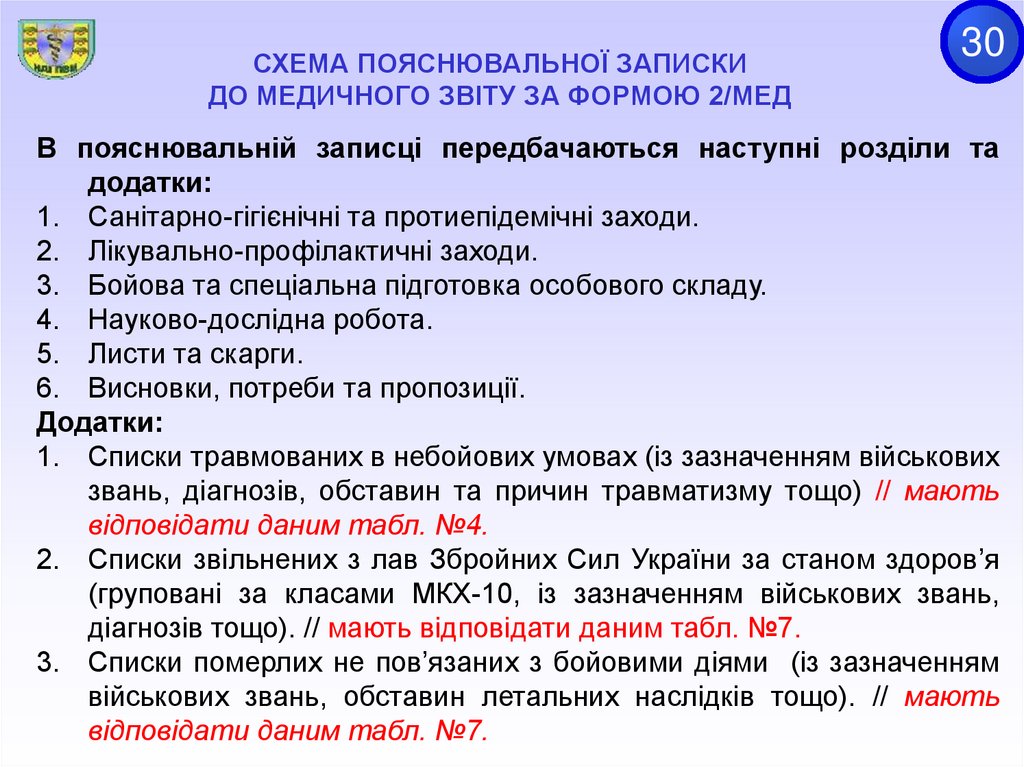 СХЕМА ПОЯСНЮВАЛЬНОЇ ЗАПИСКИДО МЕДИЧНОГО ЗВІТУ ЗА ФОРМОЮ 2/МЕД