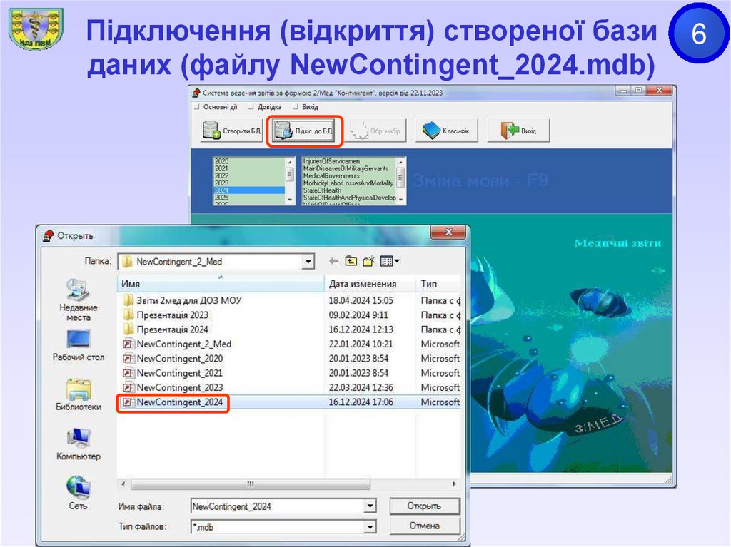 Підключення (відкриття) створеної базиданих (файлу NewContingent_2024.mdb)