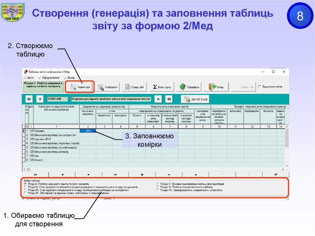 Створення (генерація) та заповнення таблицьзвіту за формою 2/Мед