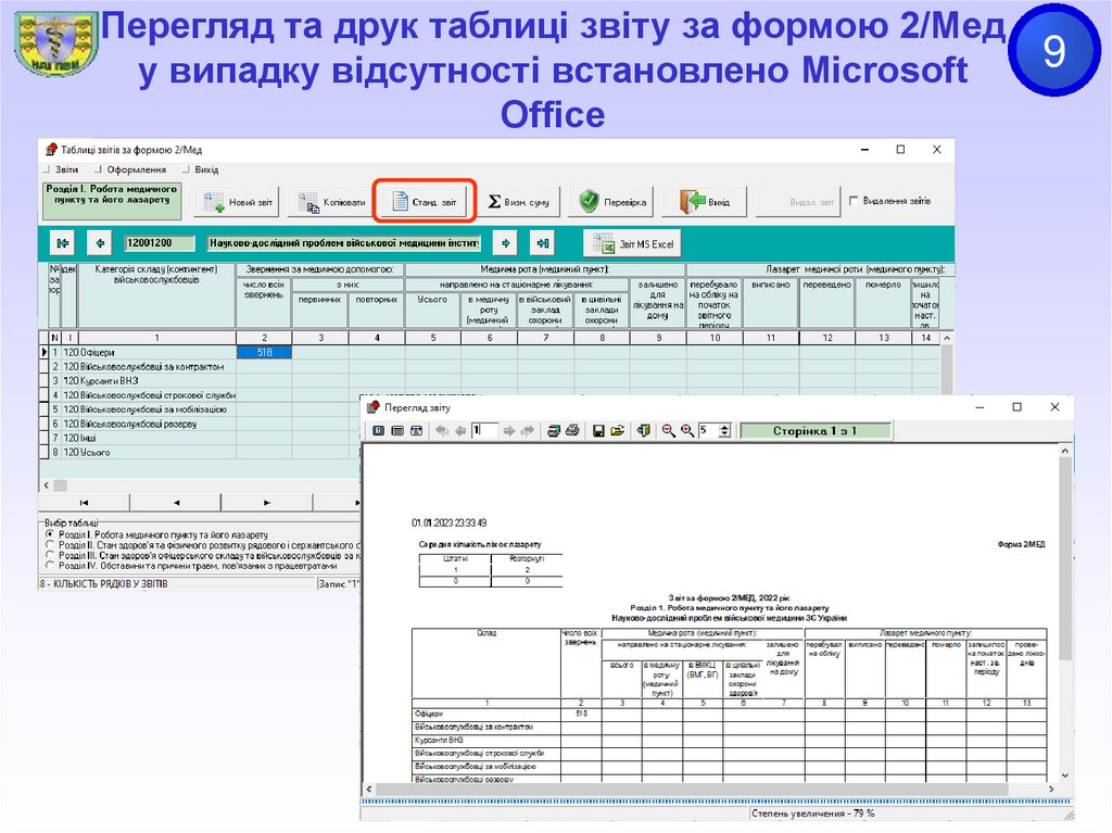 Перегляд та друк таблиці звіту за формою 2/Мед9