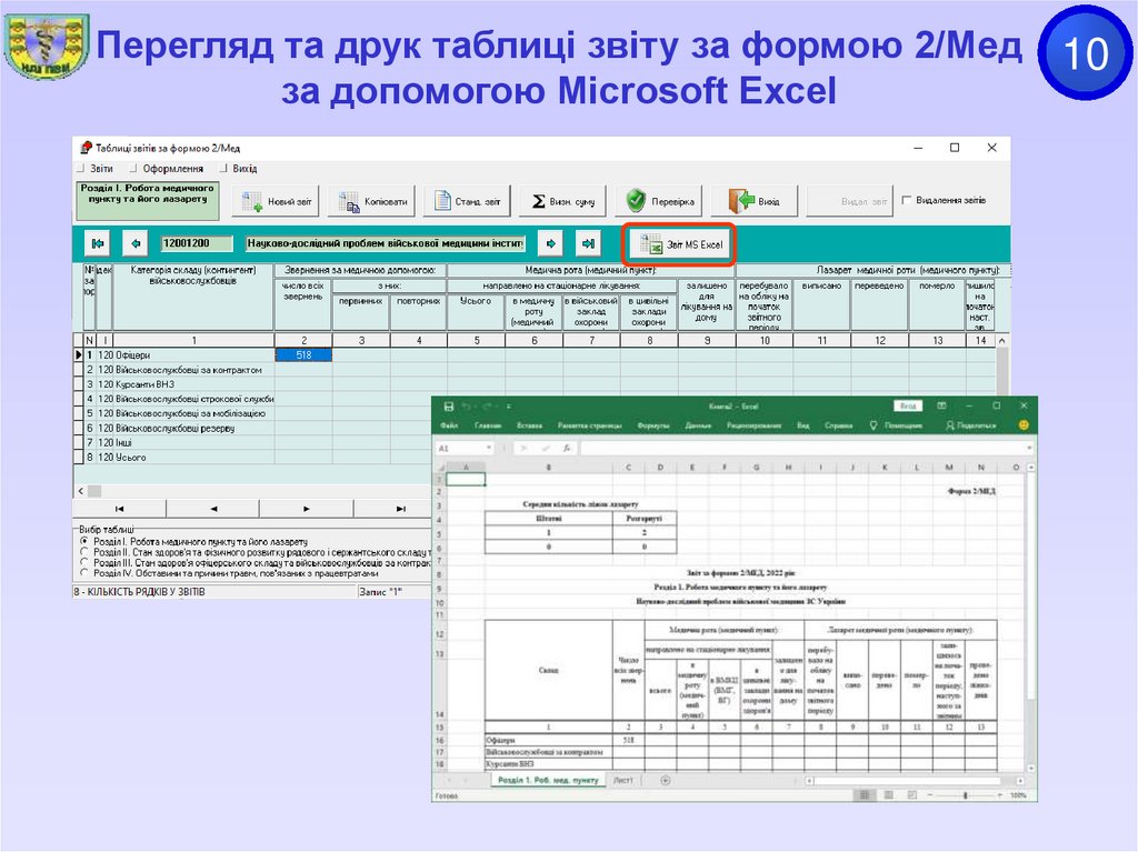 Перегляд та друк таблиці звіту за формою 2/Медза допомогою Microsoft Excel