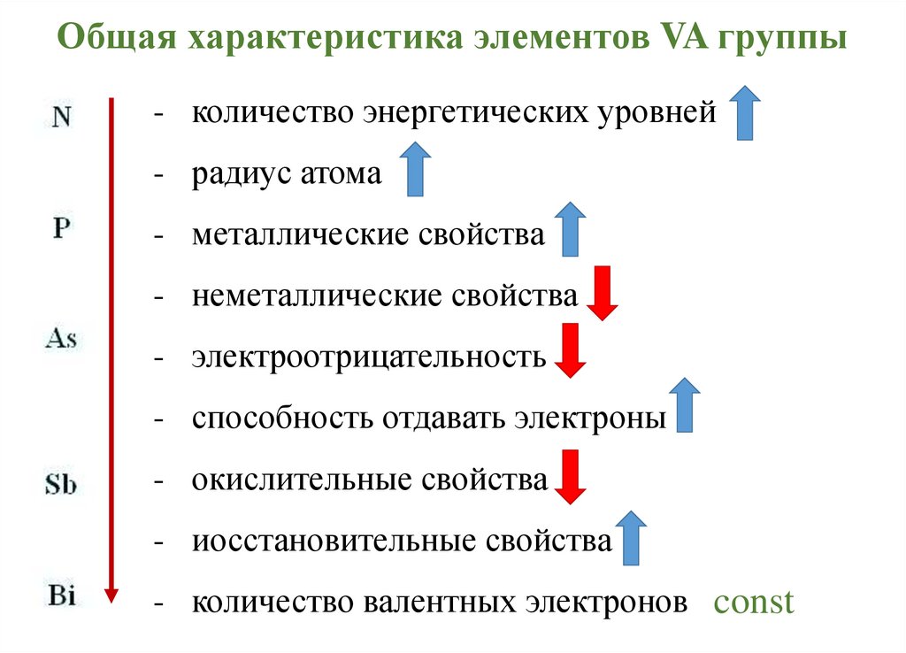 Общая характеристика элементов VA группы- количество энергетических уровней