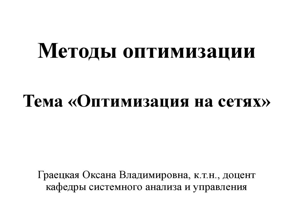 1. Методы оптимизации Тема «Оптимизация на сетях»