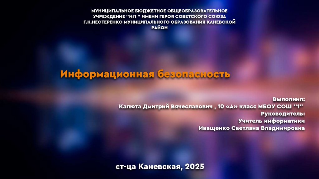 Калюта Дмитрий Вячеславович , 10 «А» класс МБОУ СОШ “1”