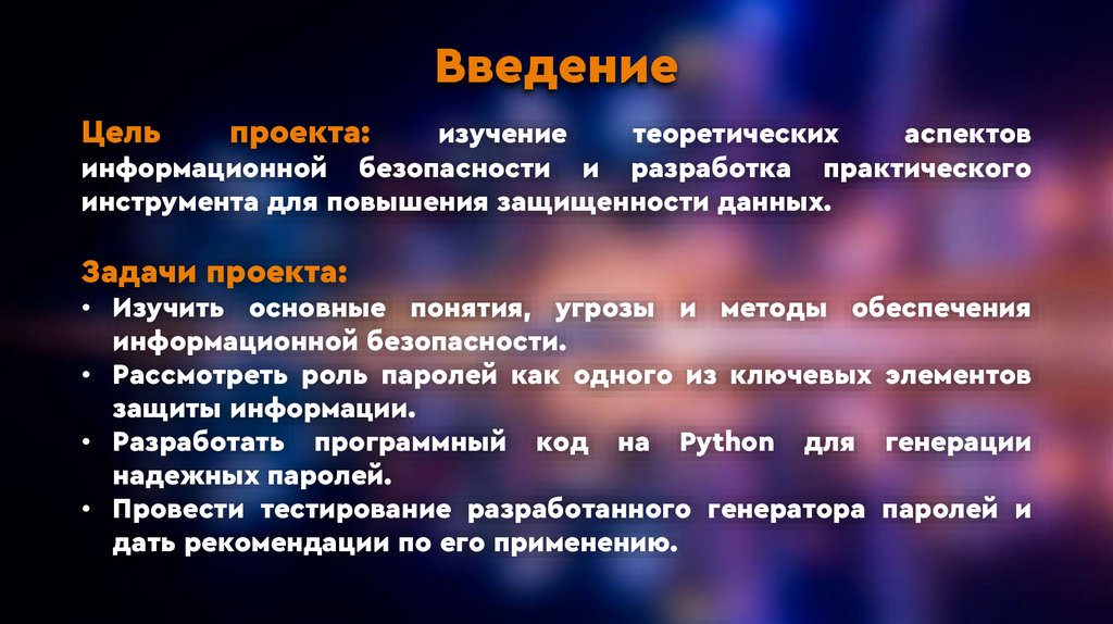 • Рассмотреть роль паролей как одного из ключевых элементов