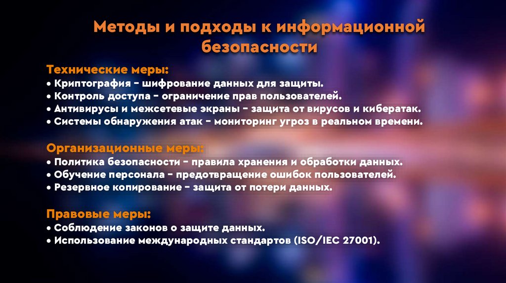 Способы защиты: Анализ угроз, внедрение технологий безопасности,