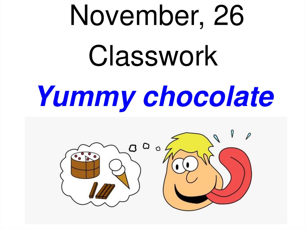 Английский язык, 2 класс, Презентация к уроку английского языка по теме- -Yummy Chocolate-
