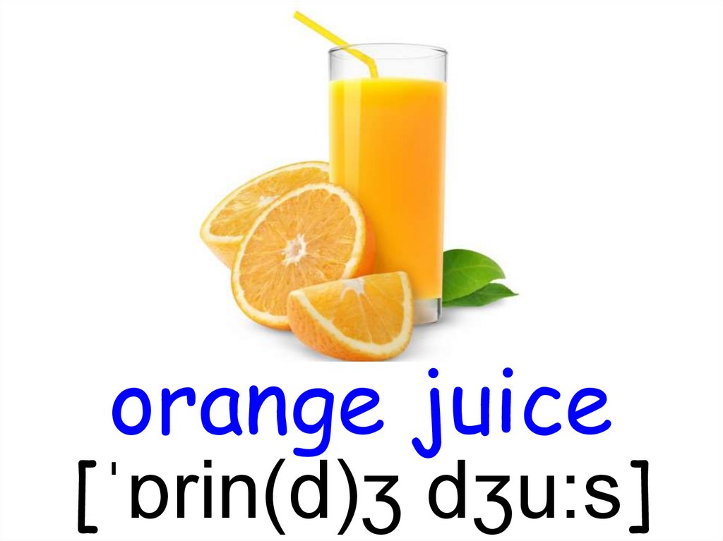 orange juice[ˈɒrin(d)ʒ dʒu:s]
