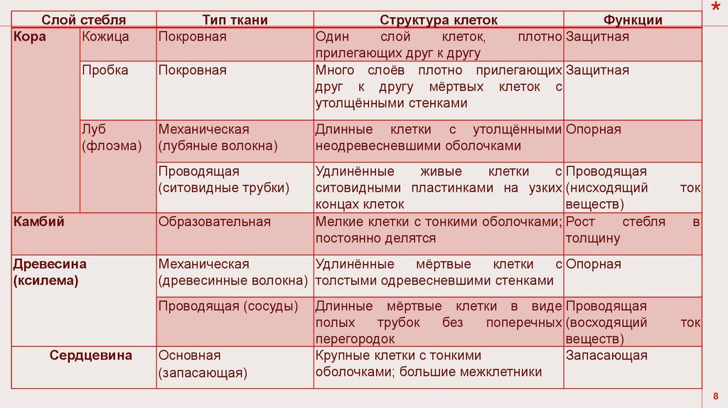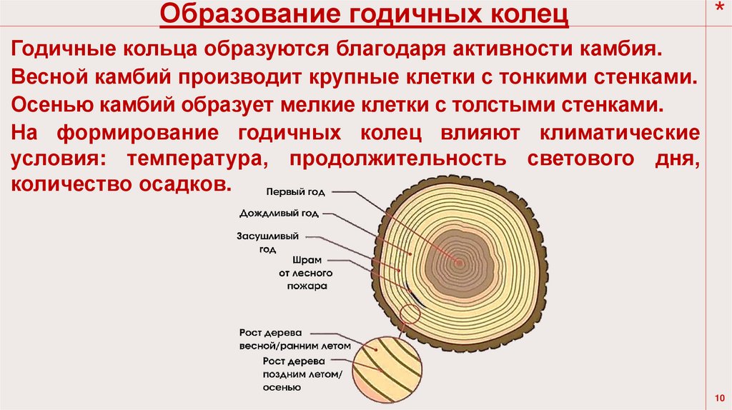 Осенью камбий образует мелкие клетки с толстыми стенками.