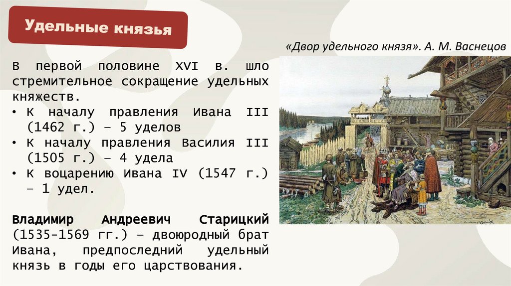 «Двор удельного князя». А. М. ВаснецовВ первой половине XVI в. шло