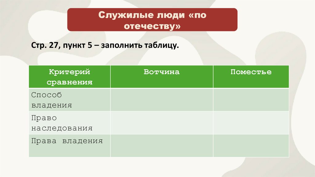 Стр. 27, пункт 5 – запишите, кто относился к этой категории.