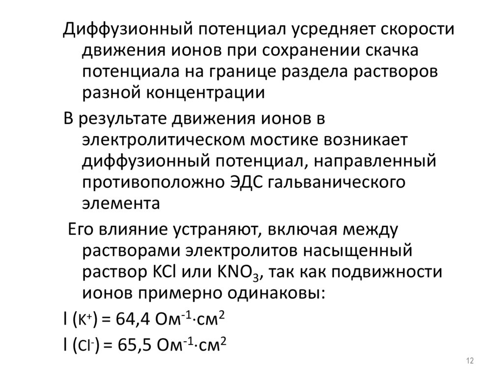 Диффузионный потенциал усредняет скоростидвижения ионов при сохранении скачка