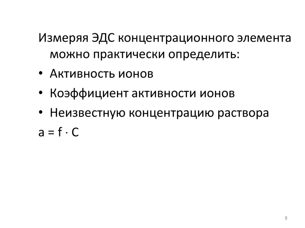 Измеряя ЭДС концентрационного элементаможно практически определить: