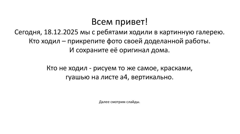 Всем привет!Сегодня, 18.12.2025 мы с ребятами ходили в картинную галерею.