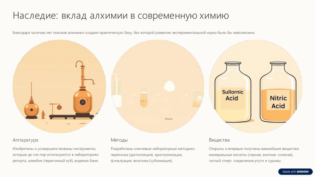 Наследие: вклад алхимии в современную химиюБлагодаря тысячам лет поисков алхимики создали практическую базу, без которой развитие экспериментальной науки было бы невозможно.