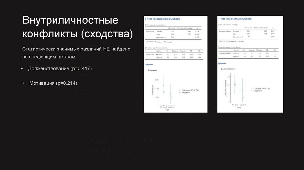 Статистически значимых гендерных различий НЕ обнаружено ни по