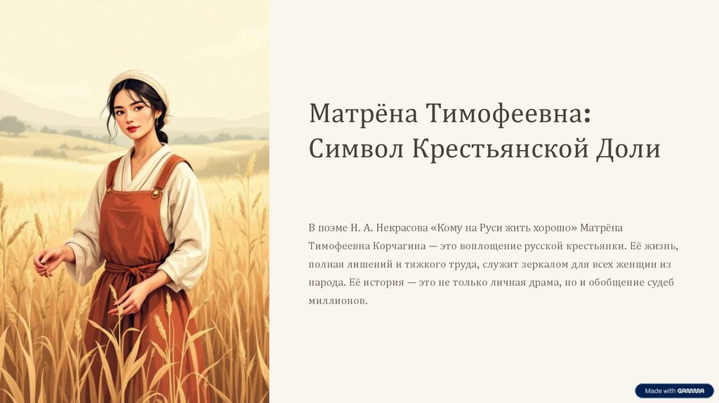 В поэме Н. А. Некрасова «Кому на Руси жить хорошо» Матрёна