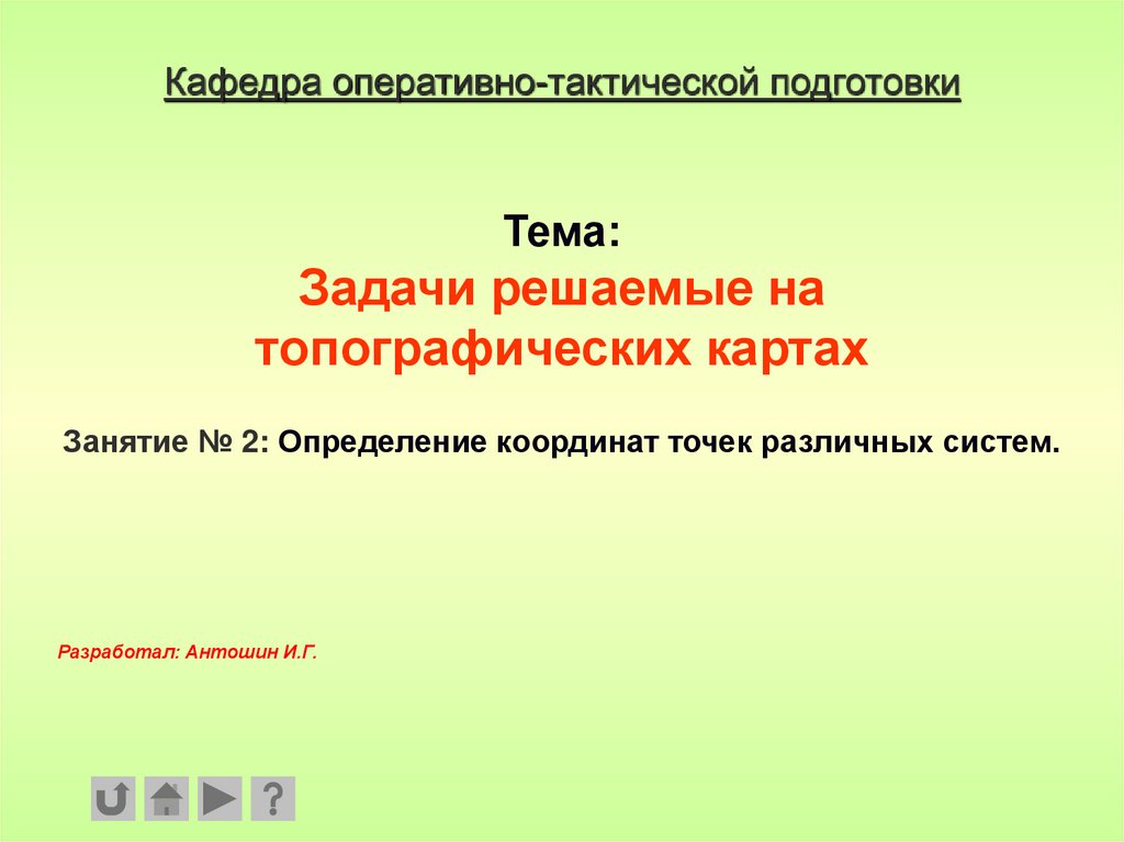 Занятие № 2: Определение координат точек различных систем.