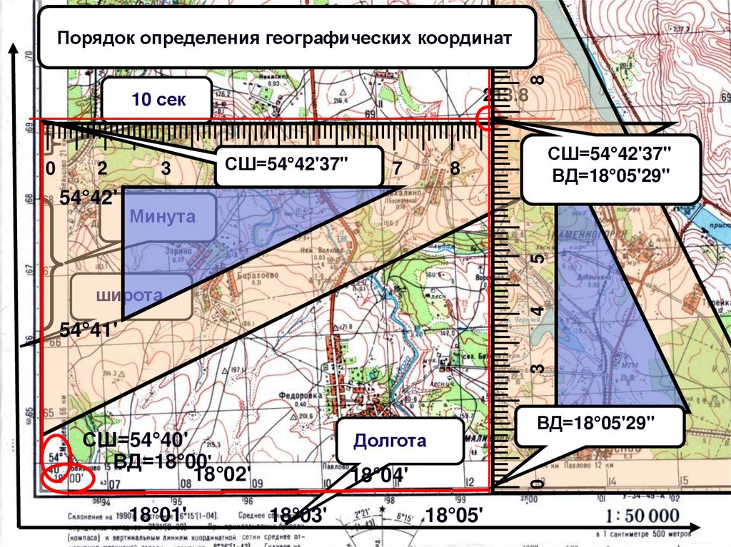 8Порядок определения географических координат.