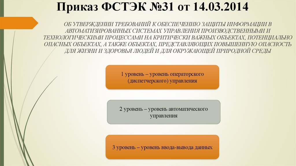Приказ ФСТЭК №31 от 14.03.2014ОБ УТВЕРЖДЕНИИ ТРЕБОВАНИЙ К ОБЕСПЕЧЕНИЮ ЗАЩИТЫ ИНФОРМАЦИИ В
